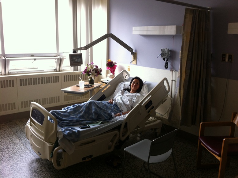 看護士さん曰く、今夜は空いたベッドがないから、リカバリールームで一夜を過ごすことになるとのこと。朦朧としている私は、ふーんそうなのね~というかんじ。ところがしばらくしてから、看護士さんが「グッド・ニュース、ベッドが見つかったから部屋に移れる」と伝えてくれました。こうして夜8時ごろにようやく部屋へ移動、ラッキーなことに個室でした。