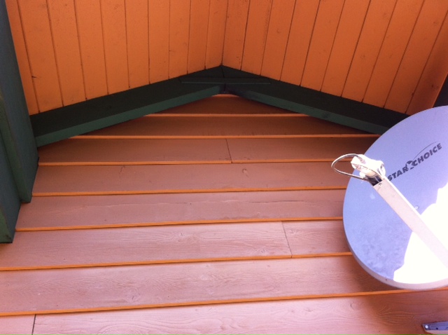 陸はネズミの糞ではないかと心配していました。コウモリの糞の可能性もあるといって、インターネットで調べ、糞を分析して突き止めないといけないと話していた矢先、ドアの上の屋根を支えるグリーンの三角の柱?と壁の隙間をライトで照らして見てみたところ、コウモリが居るのが確認できました。