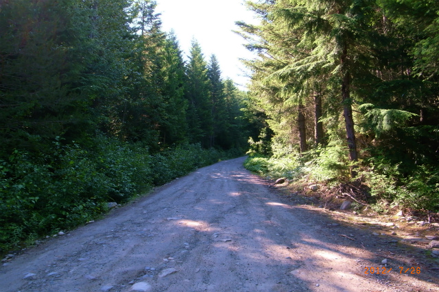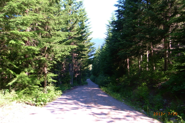 後ろを見ても坂。こんな道をひたすらこぎ進むこと一時間。そろそろ湖のトレイルの入り口にある駐車場にたどり着いてもよさそうなころなのに、こんなに遠かったっけ!?