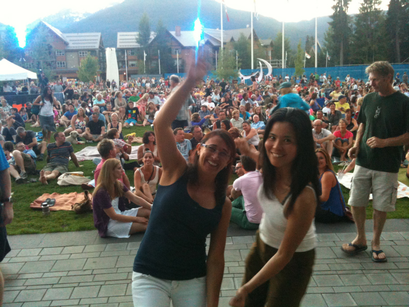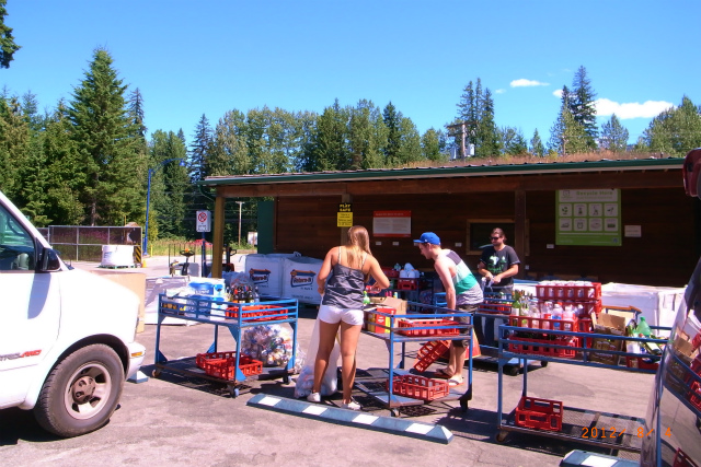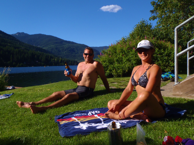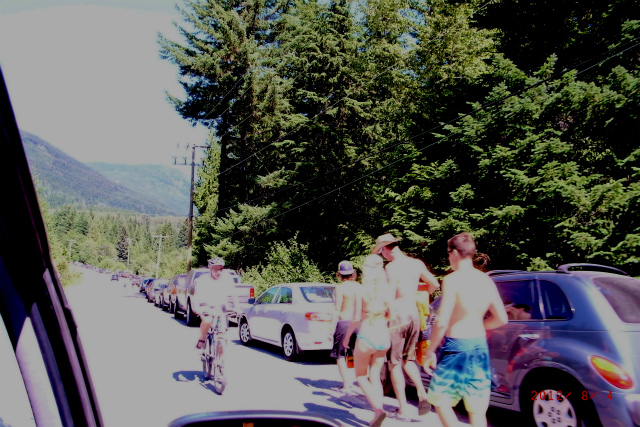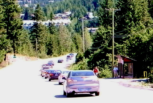 2012年8月4日(土)晴れ 8月の第1月曜日は、British Columbia Day の祝日です。これはブリティッシュ・コロンビア州独自の祝日で、他の州では別の名称の祝日だったり、祝日でなかったりします。州によって違う祝日があることを初めて知りました。三連休になるので、ウィスラーにもたくさんの観光客が押し寄せます。人ごみをさけてキャビンで過ごそうかと話していたのですが、この夏一番の暑さになるとの天気予報を聞いてウィスラーで過ごすことにしました。 ウィスラーでは暑い週末は大歓迎で、たくさんの人が湖に繰り出します。予報どおりに気温は32度くらいまで上がり、じりじりと熱い日差しを感じることのできる日でした。 休日になると、子どものように、あれもしたいこれもしたいと言い出す陸に、好きなことをしていいけど、三つの用事を片付けるようにと言い渡しました。空き瓶をリサイクルに持っていくこと、バーベーキューグリルをきれいにすること、キレている車のヘッドライトを交換すること。 さっそく、土曜日の午前中に空き瓶を出しに行きました。ところが、ハイウェイはウィスラーでは珍しく、バンクーバー方面から押し寄せる車で渋滞中。 仕方なく、遠回りして裏道から、リサイクルセンターに向かいました。 途中、湖のビーチの近くの道路には駐車場からはみ出た車がずらりと停まっていました。 リサイクルセンターに到着。こちらでは、ビールやワインなどの空き瓶、空き缶をボトルディポに持っていくと、有償で引き取ってくれます。 用事を片付け昼食をとったあと、バイクでレイクのそばにあるオルガの家まで行ってから、一緒にビーチに出かけました。2時間ほどビーチで過ごしてから、オルガの家でパイナップルマルガリータとハンバーガーをごちそうになって、そこから土曜の夜のコンサートに出かけました。 この日は、Spirit of the West というバンドが登場。とても人気のある乗りのいいバンドです。前で踊ろう!というオルガに引っ張られて、ステージの前で、思い切り踊りながらコンサートを楽しみました。テキーラのお陰か、超ノリノリで踊り続けてしまいました。こんなに踊ったのは十ん年ぶり!? その後、たくさんの人から、ビッグスクリーンに写ってるのを見たよと言われました。私たちの踊っているところが、舞台の両側のビッグスクリーンに写っていたそうです。この日は、バイクで汗をかいたあと、レイクで泳いでそのまま出かけたので、化粧もはがれおち、タンクトップにバイクショーツとぜんぜんおしゃれしてなかったのに〜! そんな日に限って。。。