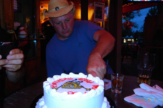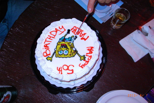 途中でスティーブが席をはずしたと思うと、バースデーケーキを買って戻ってきました。