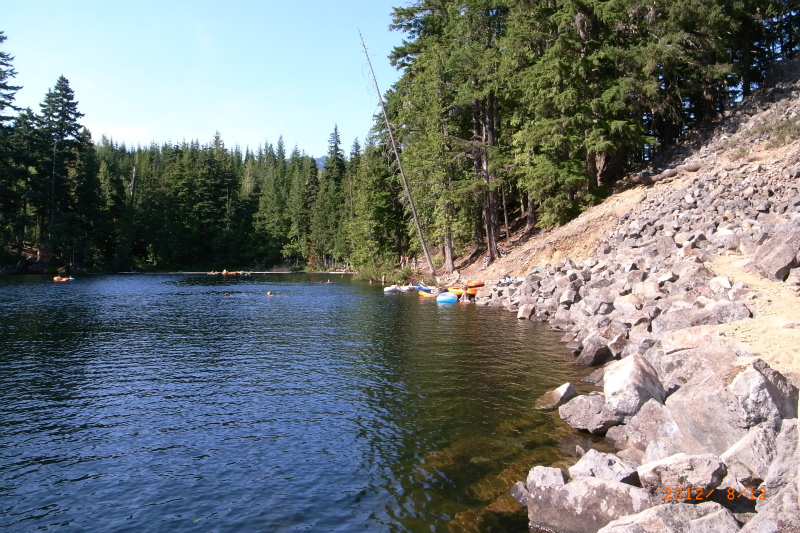 ロスト・レイクより水がキレイで水温も少し高め。気持ちよく泳ぐことができました。ただ、山が近いため日没が早いのとゆったり甲羅干しするスペースがないのが難点でした。