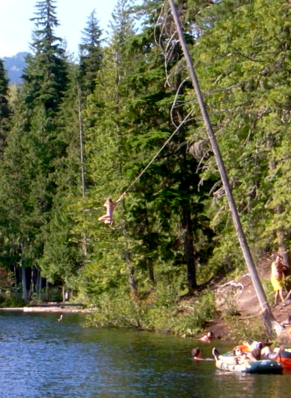 湖にはお約束のように、木の枝からロープが下がっていて、子供たちがロープから湖に飛び込みます。