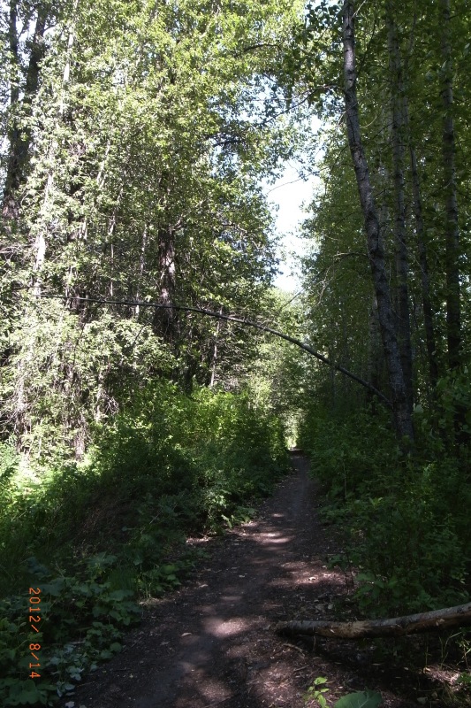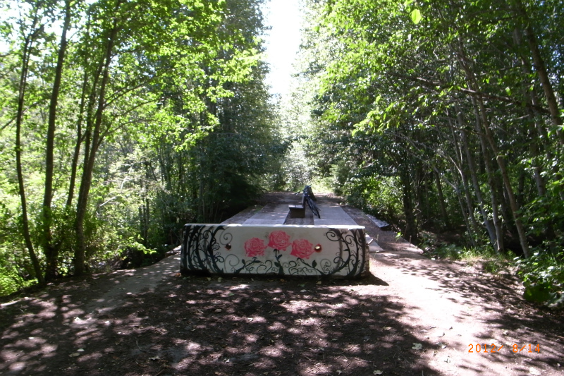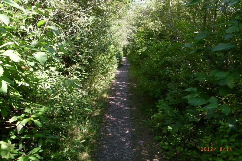 ファンクション・ジャンクションのお気に入りの店の裏手から入りウエストサイド・ロードが線路と交差する場所に出ます。ハイウェイの東側には舗装された Valley Trail がありますが、アップダウンがはげしく、人の住んでいるエリアや学校の前を通り車道との交差も多いのに比べて、こちらのトレイルはなだらかなのとずっと緑の中を通っていけるのが魅力です。