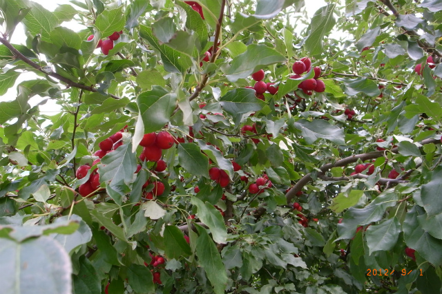 ペンバートンの道路脇の街路樹にクラブアップルがたわわに実っていました。味見すると香りがよくて美味しい。