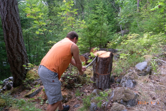 サウナで燃やすための薪を割り始めました。