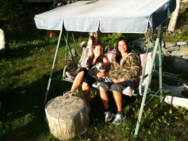 じつはキャビンに着くとすぐ陸はジョディに電話。開口いちばん「カクテルアワーは何時?」。ジョディはまだウィスラーに居るけど、5時半ごろにはキャビンに着くから遊びに来てとのこと。 夕方、スパゲティを作っていると、ジョディから電話。サンセットがキレイだから早くおいで〜と言います。食事をすませジョディのキャビンへ。