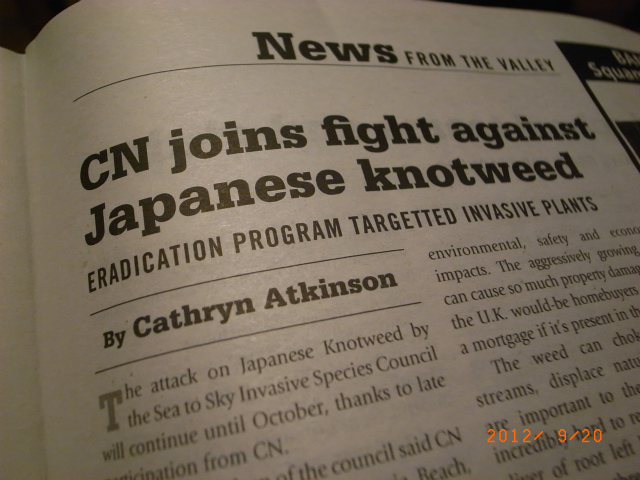バンクーバーからウィスラーに通じるハイウェイ沿いの地域は、Sea to Sky corrider と呼ばれていますが、この地域にも日本から来た有害植物がはびこって大きな問題になっています。この記事は 植生管理を行っている公的機関がJapanese Knotweed の駆除を10月まで続けることが決まり地元の人が喜んでいるという内容でした。