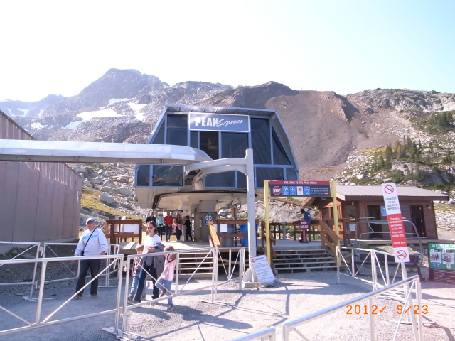 ゴンドラを下りると、少し坂を下って、頂上まで行くリフト Peak Express に乗り換え。