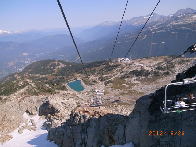 そんななかエッジカードを買いに行ったところ、夏のリフト券1回分が特典として付いていると言われ、さっそく出かけることに。ちょうどこの日が、頂上まで行くリフト Peak Express の最終運行日。ぎりぎりセーフのグッドタイミングでした。