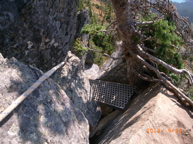 オッオー、岩の隙間に金属の板が渡してあります。通ってしまうとたいしたことないのですが、板に乗るとき、ちょっと足がすくみました。