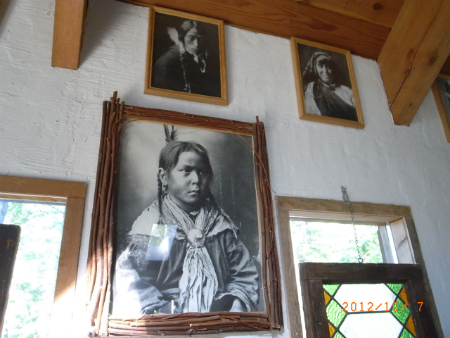 インディアンが好きでたくさんの写真が飾ってありますが、この額縁のフレームはたくさんの小枝で飾られています。