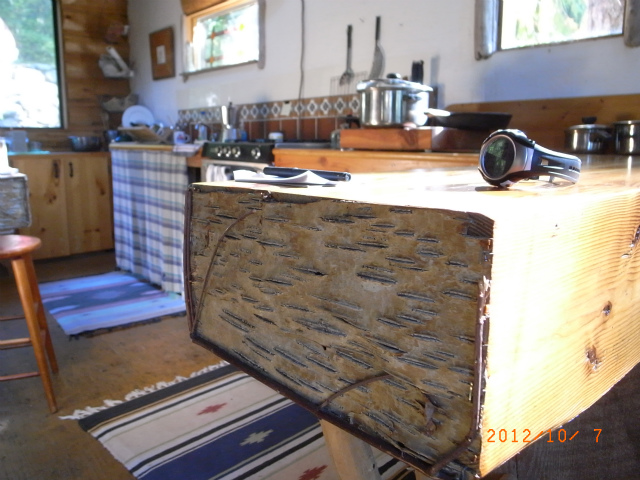 キッチンカウンターの端には樺の木の皮が貼ってあります。