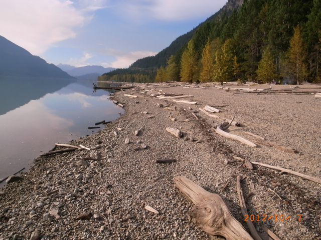 流木は、Lillooet Lake のビーチにたくさん落ちています。