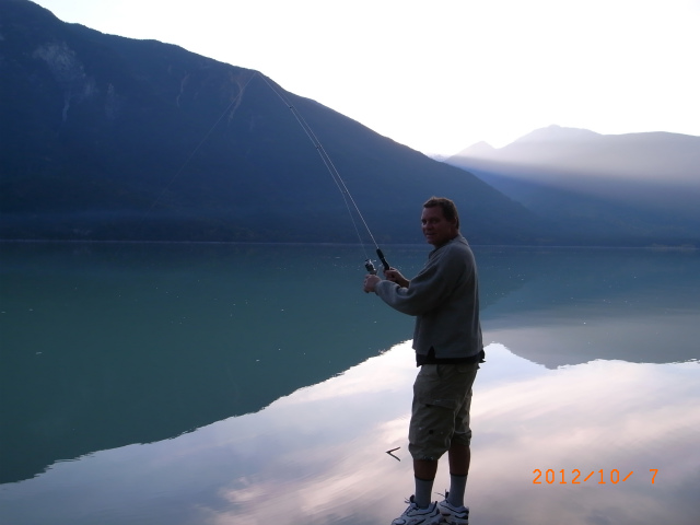 お気に入りの店で買った釣り竿をためしたりしつつ、散歩を続けます。