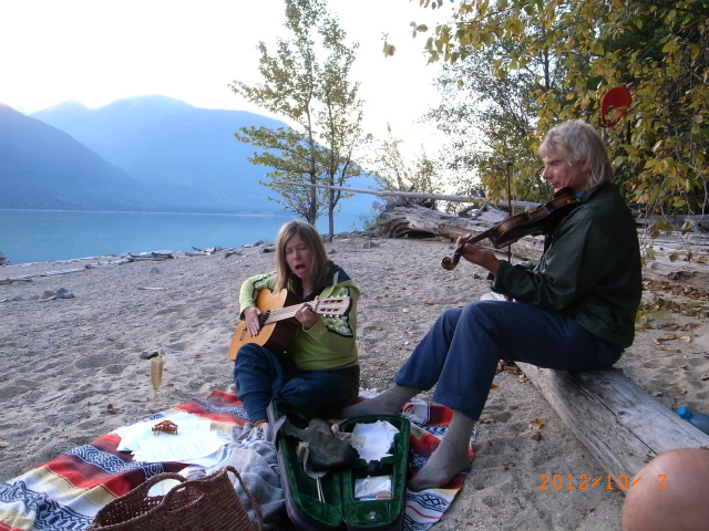 その次は、ジョディの歌に合わせてヤンがバイオリンで伴奏します。その後、ヤンがビバルディも演奏してくれました。美しい景色のなかで、スパークリングワインをご馳走になりながら透き通った音色につつまれ、贅沢気分に満たされました。