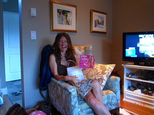 仕方がないので、バスとタクシーを乗り継いで、着いたのは6時15分。すっかりタイミングを逸したと思っていたのに、リンの姿が見えません。聞くと仕事のミーティングが入って遅くなったリンは「ワインは今日でなくてもいいでしょ。天気がいいし今からレイクに泳ぎに行く」と言い出しマーティはお手上げ。仕方なくブレンダが電話してパーティのことを話して来るように言ったとのこと。サプライズの瞬間に間に合ったと思ったらもうサプライズではなくなっていました。