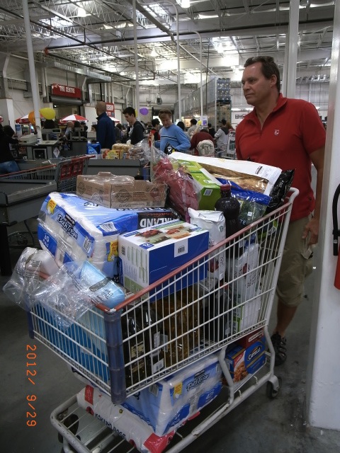 コーヒー豆、オリーブオイル、メープルシロップ、パスタ、お米、トイレットペーパー、石けん、洗剤などを大量に買い込みます。気がつくと大きなカートがいっぱいに! さて、いくらになるかことか。。。二人で予想します。私が 800 ドル、陸 は 700ドルと予想しました。結果は870ドル。お財布には痛いですが、これで3ヶ月以上はもつと思われます。