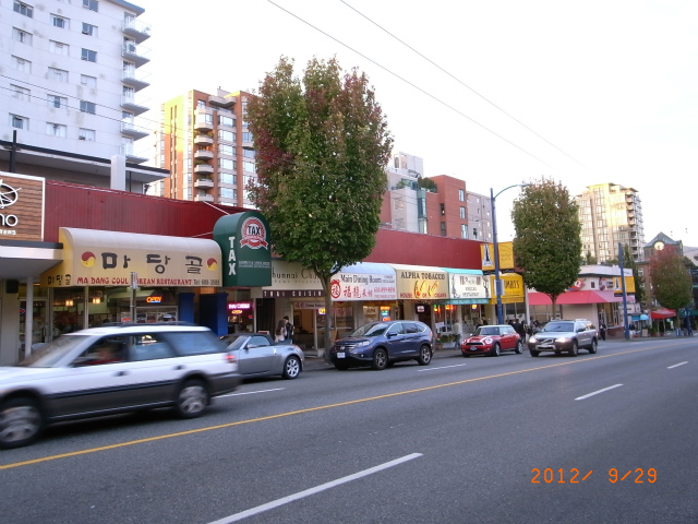 橋を渡ってから駐車スペースを探してしばらくあたりをぐるぐる回ったあとやっと車を停めて、Denman Street 沿いにある、お気に入りの店にたどり着きました。左端のハングル文字の書いてあるお店、Ma Dang Coul と読むようです。